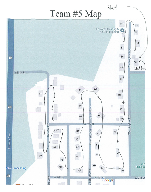 To create a canvassing map, simply zoom in on Google Maps to the desired neighborhood. Use a snipping tool, and print out the map. Once the map is printed out, mark the route with a highlighter or pen. See an example of a well-marked map below, and try your best to duplicate something like it.